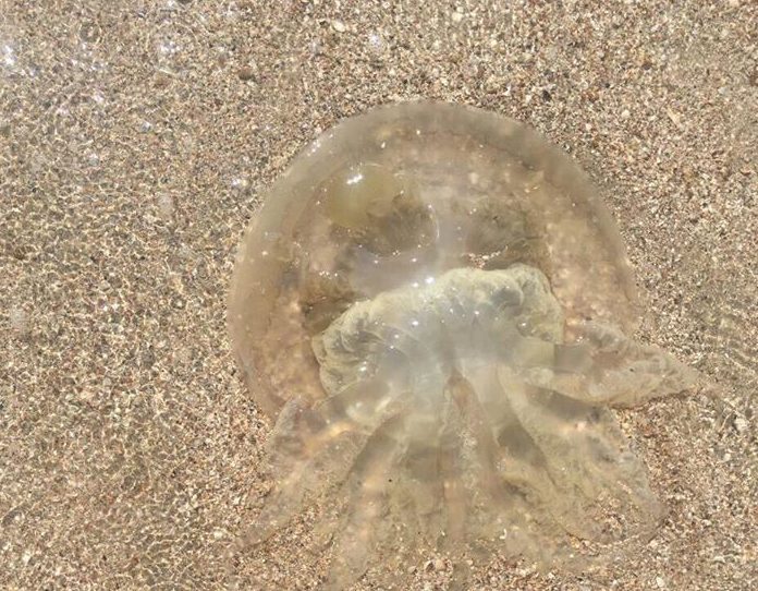 На побережье Азовского моря в Кирилловке после штормовой погоды к берегу прибило больших медуз.