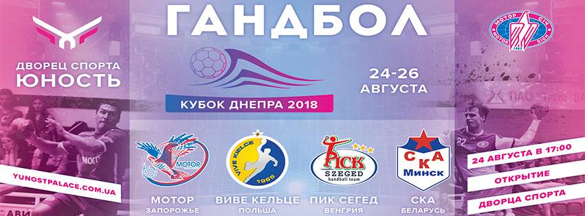 Что будет? 24 августа вместе с Днем Независимости состоится официальное открытие Дворца спорта «Юность» и старт «Кубка Днепра-2018» – гандбольного турнира. В соревнованиях буду участвовать запорожская команда «Мотор», чемпион Польши и екс-победитель Лиги чемпионов «Виве Кельце», чемпион Венгрии и одна из топ-команд Европы – «Пик Сегед», а также четвертый участник – вице-чемпион Беларуси – «СКА-Минск». С 24 по 26 августа каждый день в «Юности» будет проходить по два матча «Кубка Днепра».