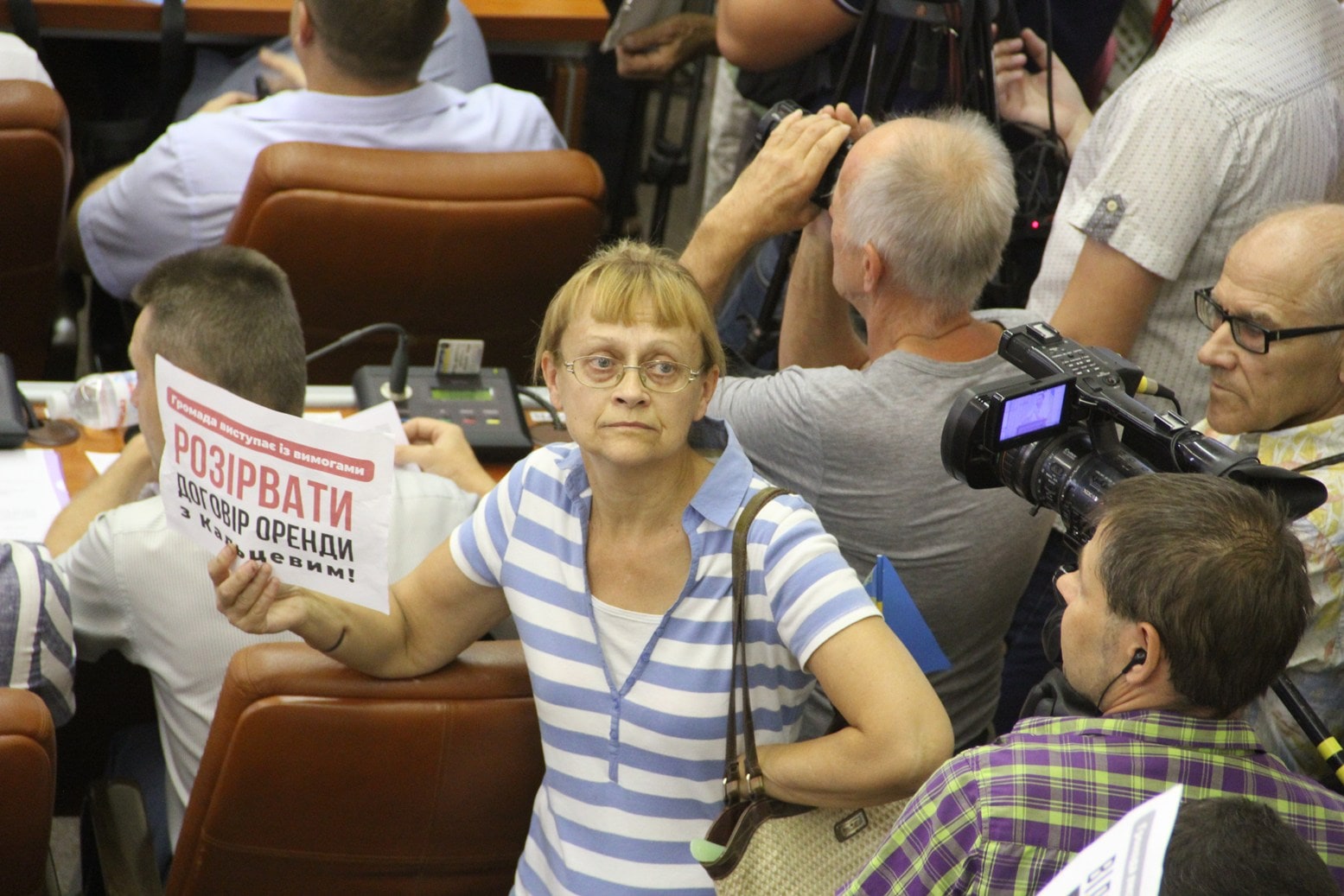 Перед сессией у входа в мэрию прошел митинг сторонников и противников строительства ТРЦ в центре города. Обе стороны около часа отстаивали свои точки зрения, а затем переместились в сессионный зал,
