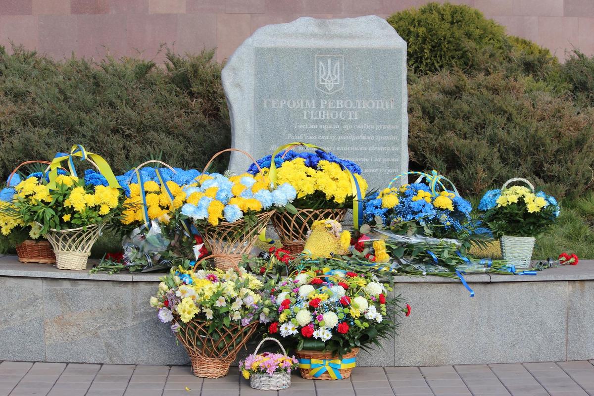 Представители духовенства провели молебен в память по погибшим на Майдане, а также военнослужащим погибшим в войне на Донбассе. Церемония завершилась возложением цветов памятнику Героям Майдана.