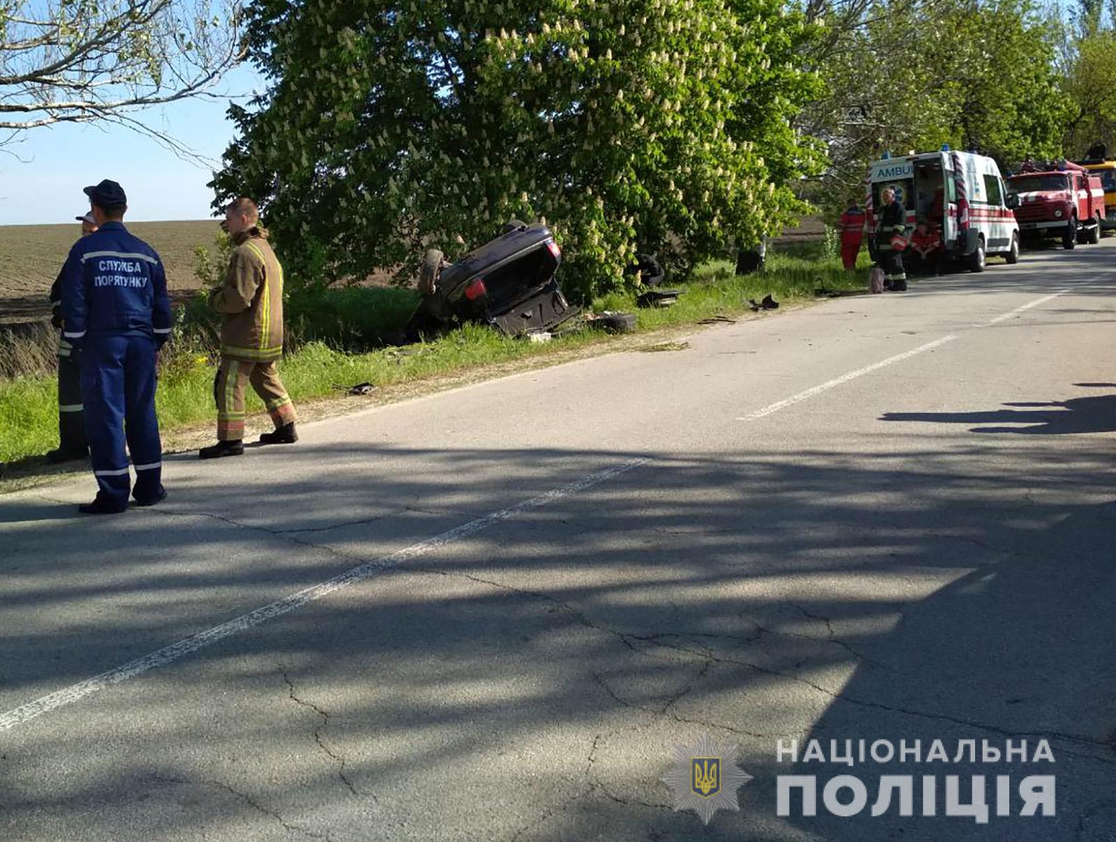В Вольнянском районе водитель автомобиля не справился с управлением и совершил наезд на дерево. В результате аварии два человека погибли на месте происшествия. Открыто уголовное производство.
