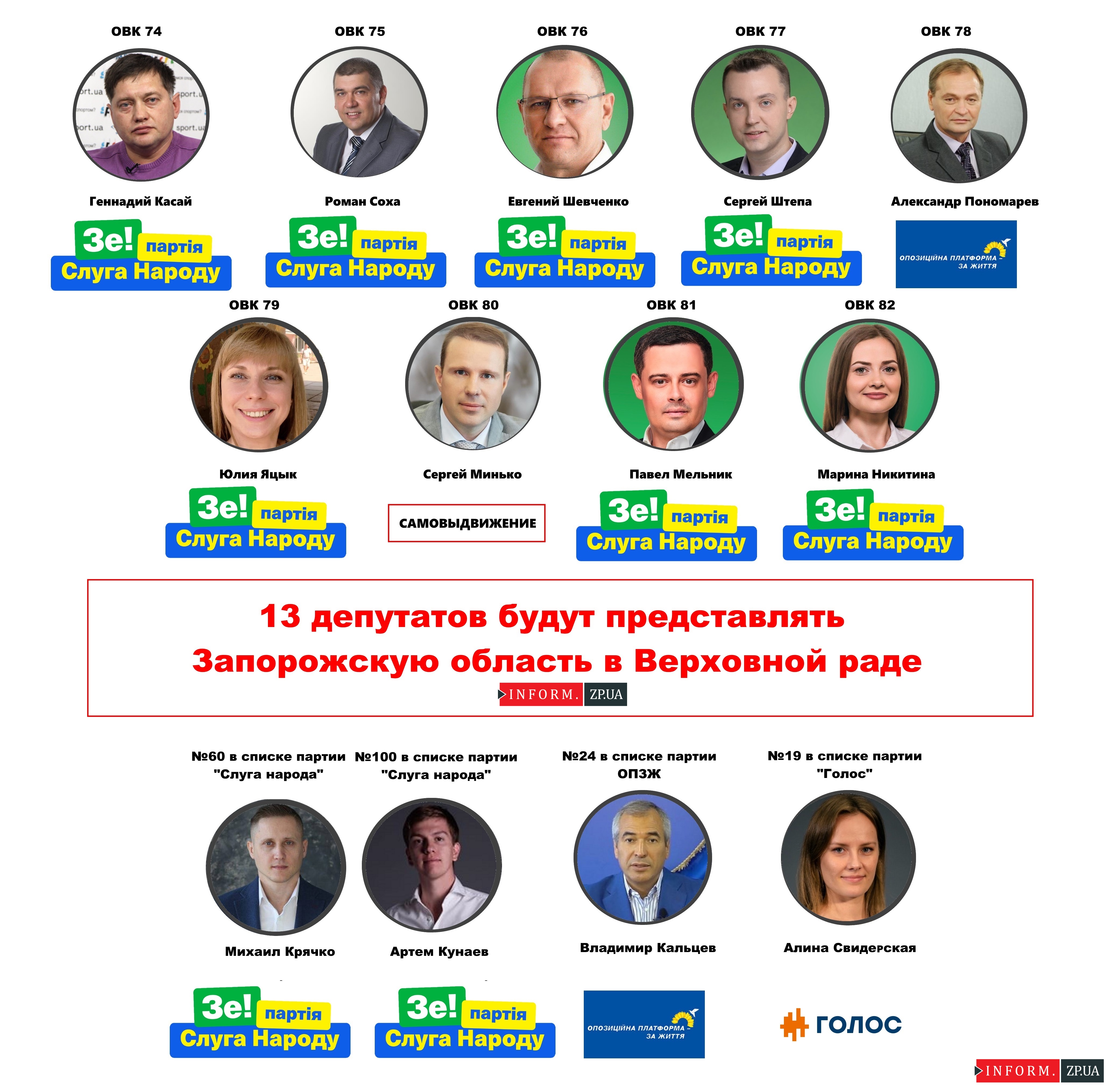 Слуги народа взяли 7 из девяти округов в Запорожской области и провели еще 2 предствителя региона на спискам партии.