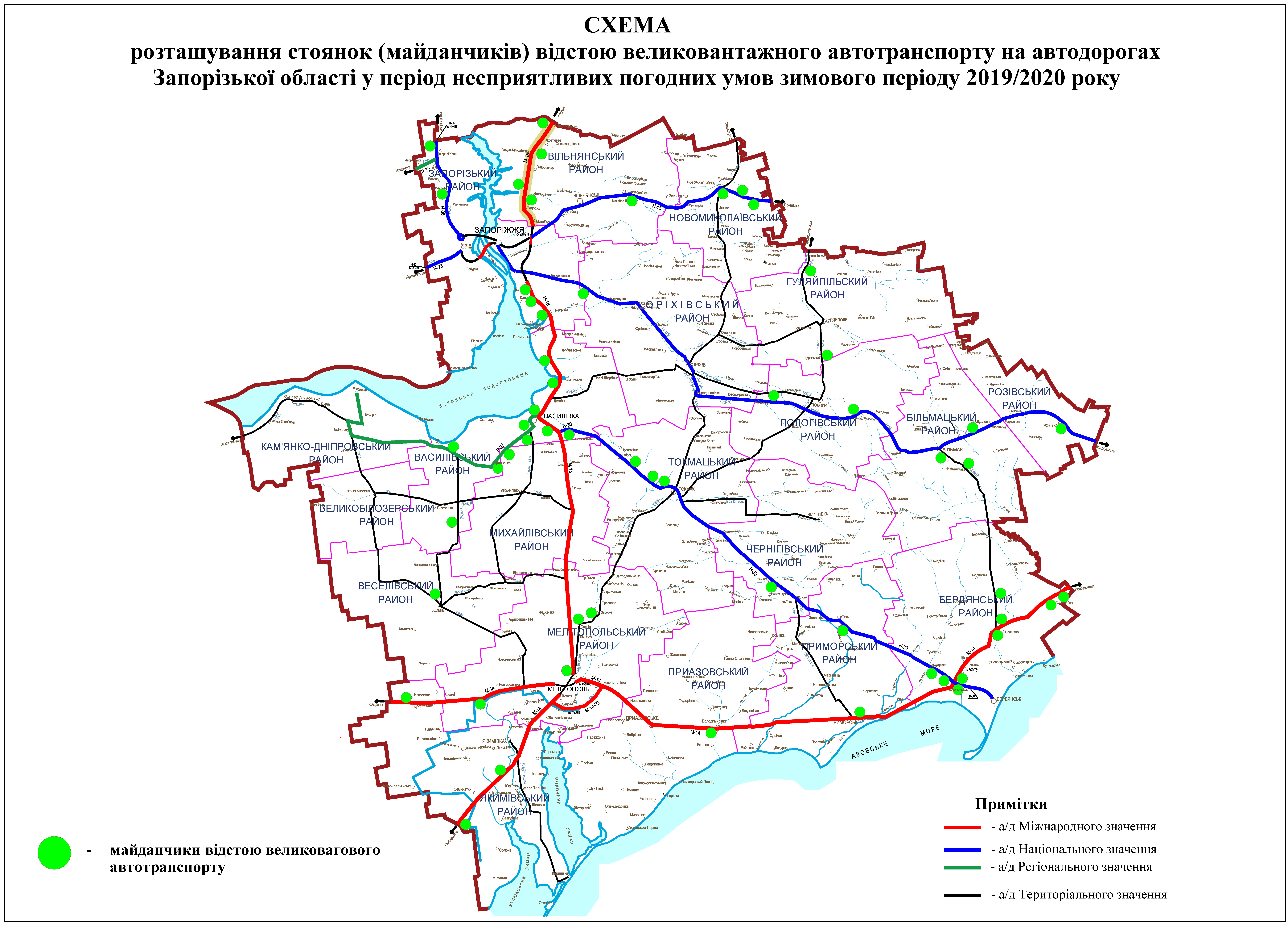 В облавтодоре сообщили о схеме стоянок крупногабаритного транспорта в запорожской области в зимнее время на период 2019-2020 года.