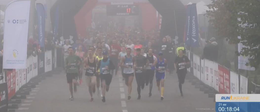 Полумарафон стартовал в усложненных погодных условиях. Погода приготовила для участников забега туман и низкую температуру.
