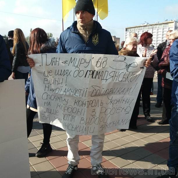 Сегодня, 25 октября, в Запорожье на Майдане Героев перед зданием облгосадминистрации на акцию “Против капитуляции” пришли десятки людей.