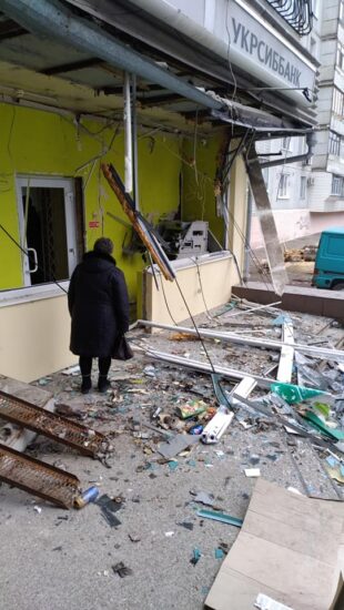 У приміщення повністю знищений пластиковий фасад, а також відкритий банкомат з грошима. Унаслідок вибуху постраждалих немає, а працівники банку від коментарів відмовляються.