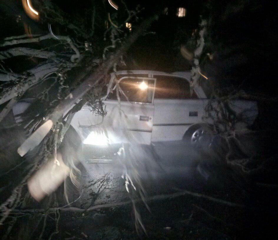 Вечером на улице Днепровское шоссе дерево упало на легковой автомобиль “Москвич” и заблокировало водителя, который находился в салоне. Спасатели, прибывшие на место происшествия, деблокировали мужчину и передали работникам скорой помощи.