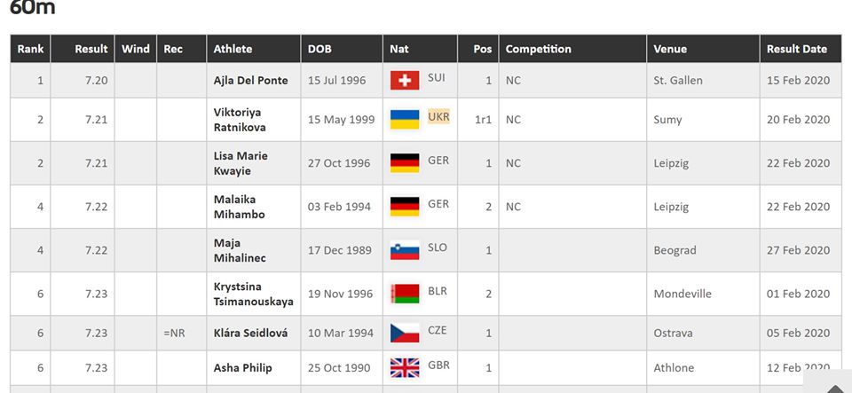 По результатам, показанным в зимнем сезоне четыре представителя Федерации легкой атлетики области входят в ТОП-10 европейского сезонного рейтинга.