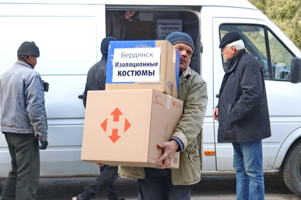 Бердянские медики больше не «беззащитны». Сегодня в БТМО привезли десятки коробок с самым необходимым для работы медперсонала, который будет работать в отделении, обустроенном для принятия инфицированных коронавирусом. Медики получили специальные стерильные перчатки, респираторы третьего уровня защиты, изоляционные костюмы, защитные очки многоразового использования, изоляционные халаты, медицинские шапки, специальные длинные хирургические печатки, многоразовые защитные маски со сменными фильтрами, бахилы, защитные одноразовые маски, медицинские щитки для защиты лица.