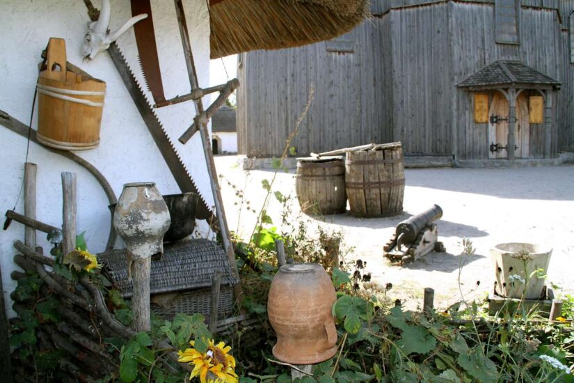 При обустройстве казацкого куреня специалисты Национального заповедника «Хортица» вдохновлялись различными источниками информации. В частности, историческими документами с «Архива Коша», «Проект реконструкции Новосеченского ретраншемента 1766», воспоминаниями Никиты Коржа.
