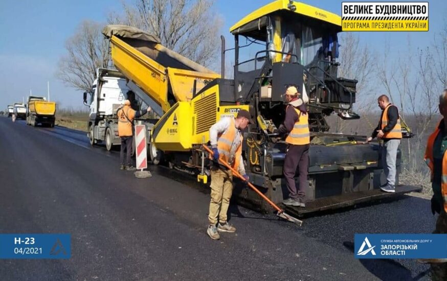 Работы по текущему среднему ремонту на участке со стороны Запорожья до границы с Днепропетровской областью, протяженностью 10 км, были начаты 1 марта текущего года. Подрядчиком выступает фирма ООО «Автомагистраль- Юг».