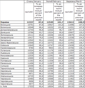 В Киеве средняя зарплата за месяц фиксировалась на сумме 20 132 грн. В Донецкой области она составляла 15 907 грн, а в Днепропетровской – 13 677 грн.