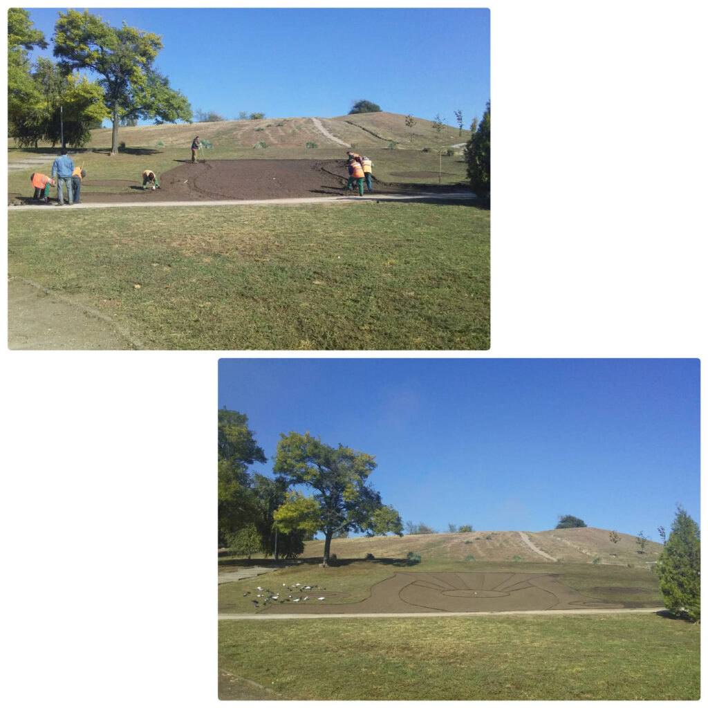 Сейчас “зеленстройщики” готовят почву и делают разметку участка для будущей выставки.