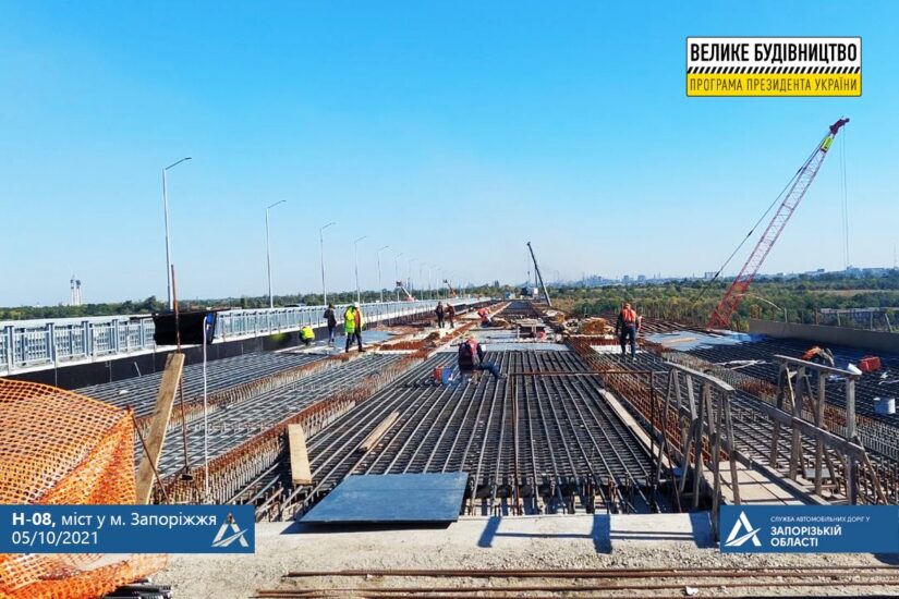В то же время в Запорожье продолжается строительство вантового моста. Его планируют открыть для проезда к концу этого года. Он соединит левую часть Запорожья с островом Хортица. Смонтирована половина секций моста, всего их будет 8.