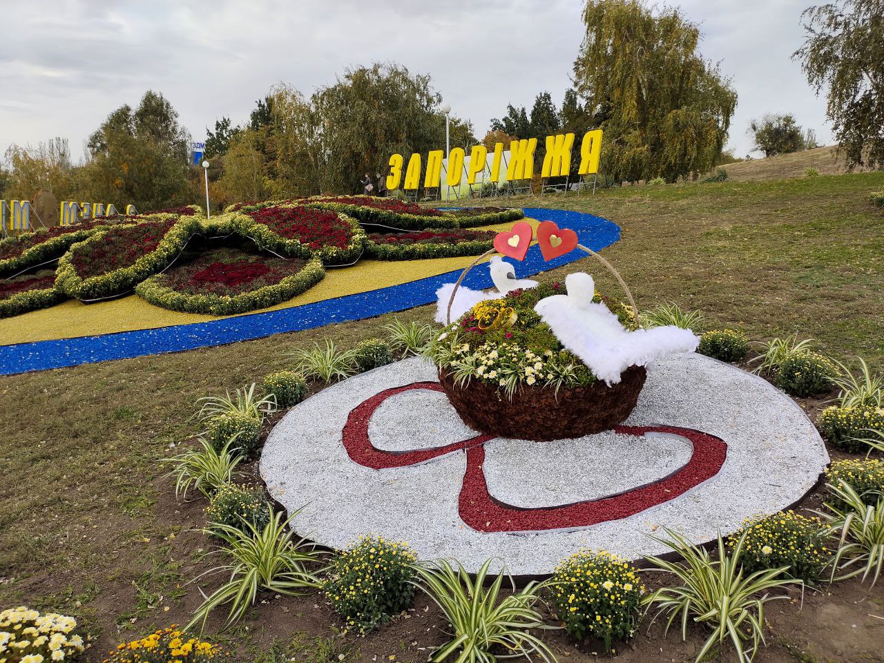 Кроме того, на территории парка есть несколько композиций, посвященных Запорожью и 30-летию независимости Украины. Например, объемный 3D-цветок из хризантем, который в темное время суток еще будет подсвечиваться.