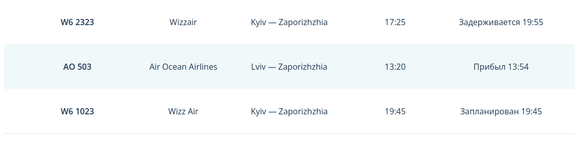 Рейсы могут переносить из-за затруднительного движения. Так, на данный момент в расписании рейсов можно заметить, что задерживается вылет рейсов Запорожье – Будапешт и Запорожье – Катовице.