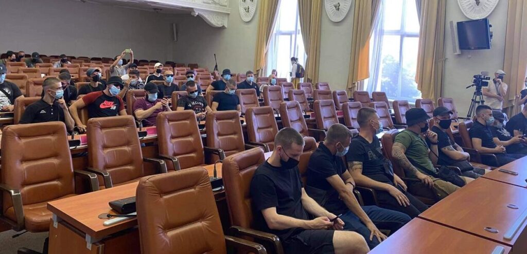 14 июля 2021 года – день, когда часть депутатов без участия мэра Запорожья Владимира Буряка планировали созвать внеочередное заседание городского совета. Незадолго до начала сессии здание мэрии заблокировали десятки неизвестных мужчин в спортивной форме.