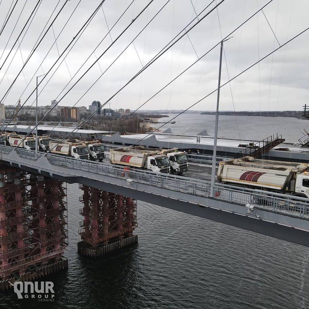 На вантовом мосту в Запорожье сегодня проводили испытания на прочность. Этот тест перед открытием нужен для того, чтобы измерить нагрузку, которая должна соответствовать проекту.