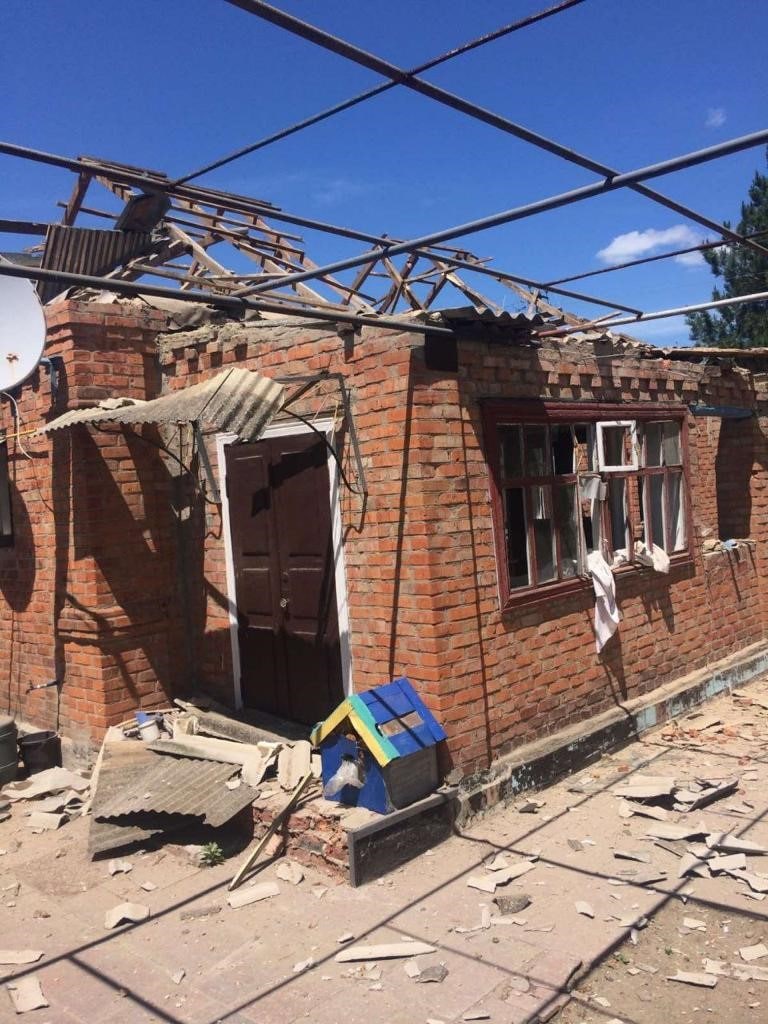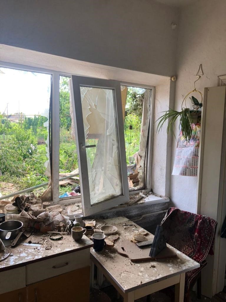 От разрыва ракетных снарядов повреждены дома и вся придомовая территория: разбиты окна в помещениях, повреждено шиферное покрытие на крышах, разрушены заборы.