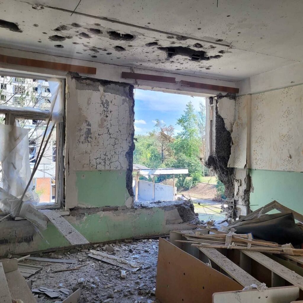 Это уже второй случай, когда рашисты стреляют в этот детский сад. Вначале июня российский снаряд попал во двор сада.