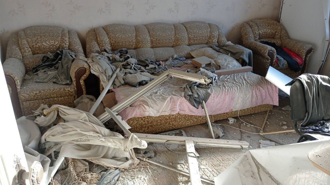 В двух домах разрушено по целому подъезду, а в одном из домов значительные разрушения получила крыша, окна и водопровод.