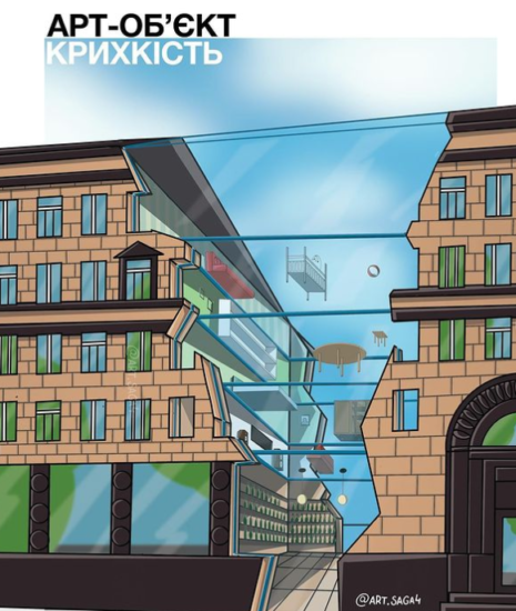 Мне пришла идея, как отразить хрупкость человеческой жизни и быта в послевоенных достопримечательностях. Именно поэтому я решил нарисовать этот эскиз здания, чтобы люди и через 20 лет могли увидеть последствия вторжения, — написал в своем Инстаграм художник.