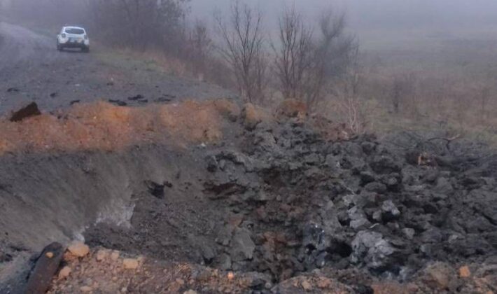 Оккупационные войска нанесли ракетный удар С-300 по одной из громад Запорожского района. Между селами образовалась воронка на дороге.