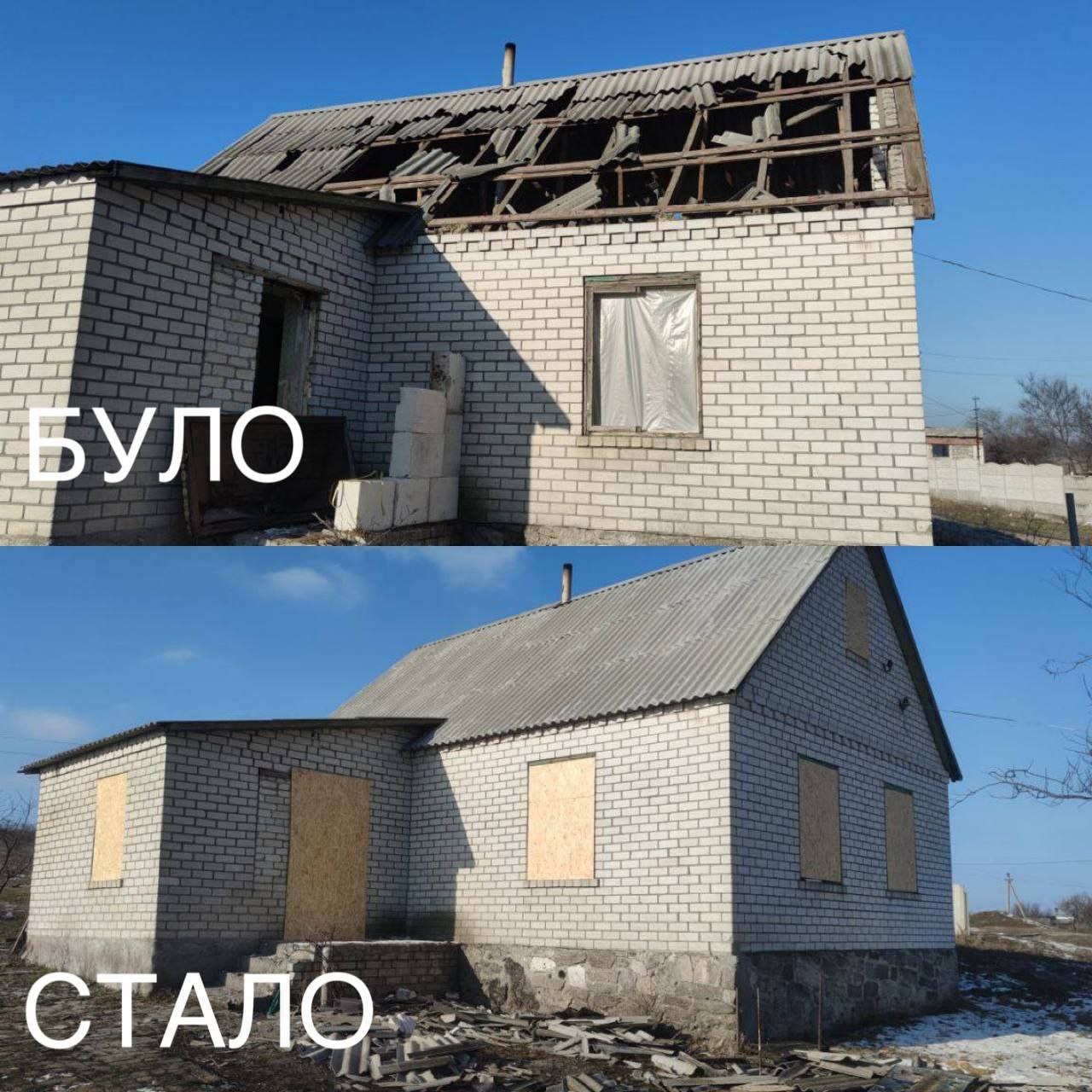 Сотрудники “Запорожремсервиса” совместно с жителями домов полностью отремонтировали в домах поврежденную кровлю и “закрыли” все выбитые окна пленкой и листами OSB.