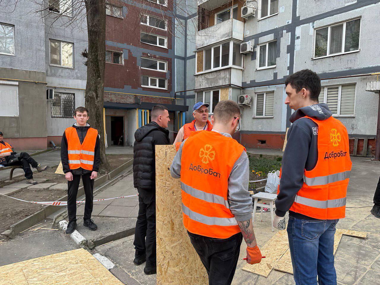 Коммунальщики ведут аварийно-ремонтные работы в домах, которые были повреждены ракетным ударом в Запорожье. Они закрыли выбитые окна 600 OSB-плитами, восстановили отопление, электричество и водоснабжение в наиболее поврежденных домах.