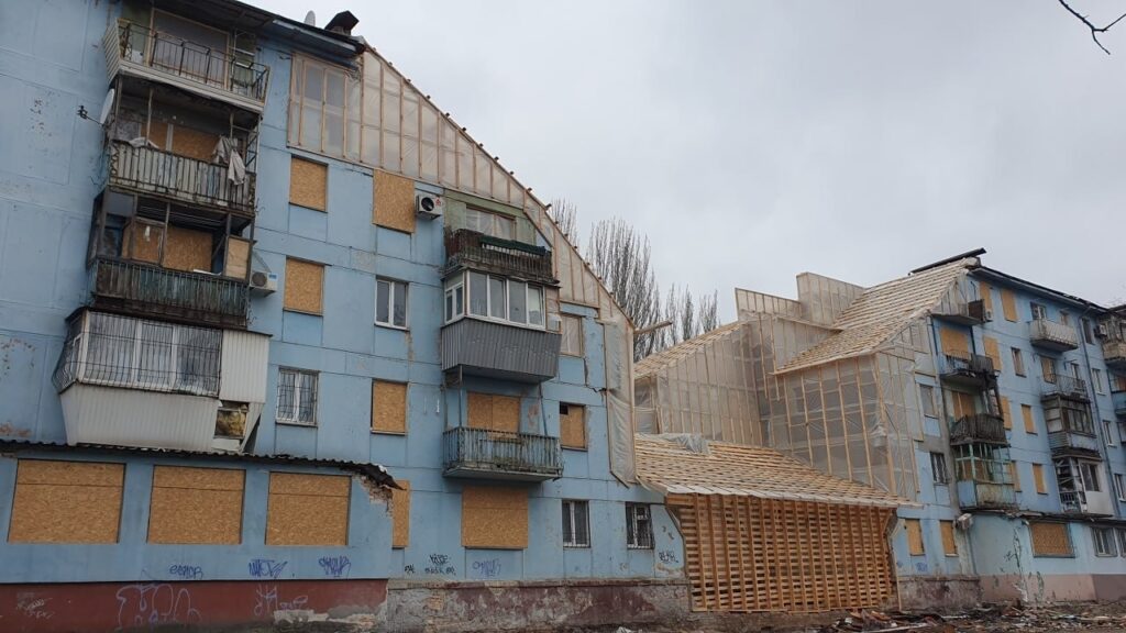 Аналогичные работы продолжаются на другом многоквартирном доме по улице Независимой Украины, который в октябре пострадал от вражеского обстрела. Главная цель – обезопасить разрушенную часть сооружения от внешних воздействий и дополнительных повреждений.