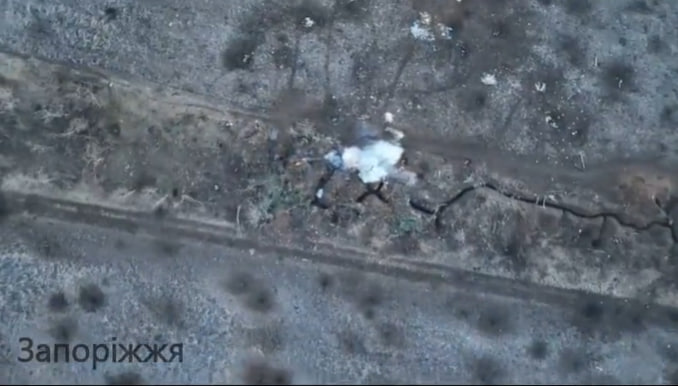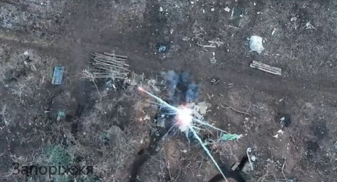 На Запорожском направлении операторы беспилотников ВСУ сбросили снаряд на позиции российских военных, где находились боеприпасы.