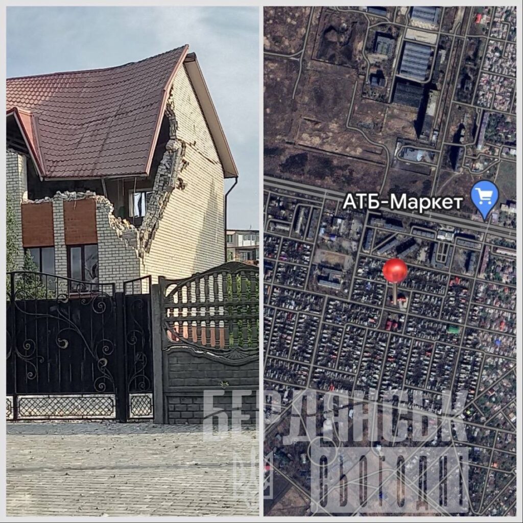 В Бердянске частично поврежден фасад Церкви Евангельских Христиан-баптистов. Местные жители сообщают, что прямого попадания ракеты в церковь не было, возможно это следы российской ПВО.