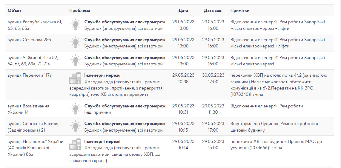 В Запорожье по некоторым адресам сегодня будут отключать электроэнергию. Это связано с ремонтными работами на городских электросетях и в лифтах.