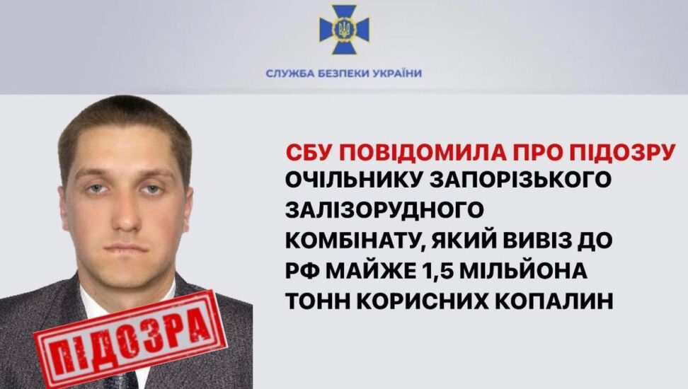 СБУ сообщила о подозрении по 3 статьям руководителю Запорожского железорудного комбината. Он вывез в РФ почти 1,5 миллиона тонн полезных ископаемых.