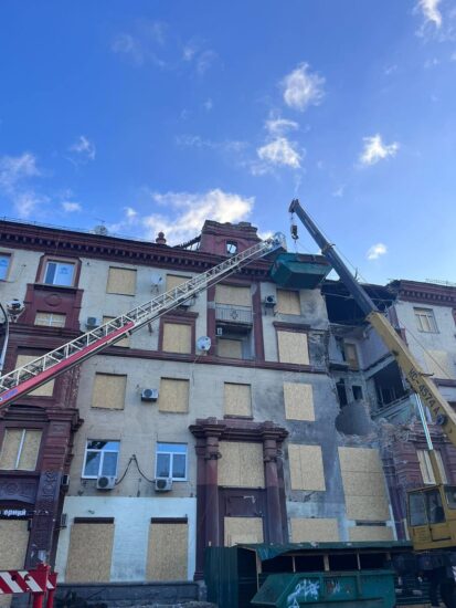 “Коммунальщики работали всю ночь. По состоянию на утро устранен аварийный наклон стены. Демонтаж части фронтонной стены главного фасада дома продолжается”, – написал Куртев.