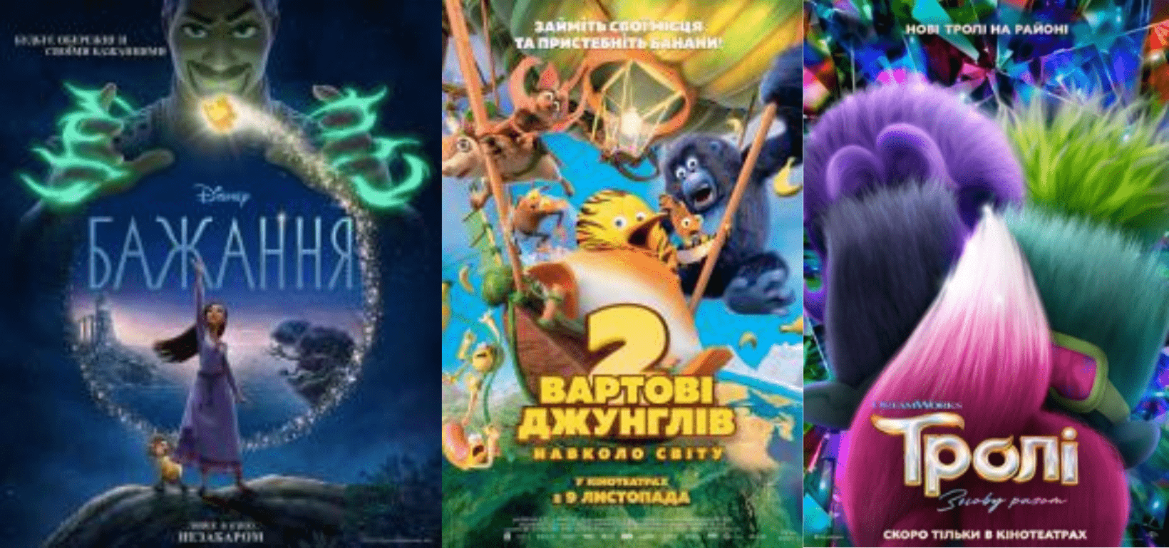 Также происходит показ трех мультфильмов: “Желание”, “Стражи джунглей 2. Вокруг света” и “Тролли: Снова вместе”.