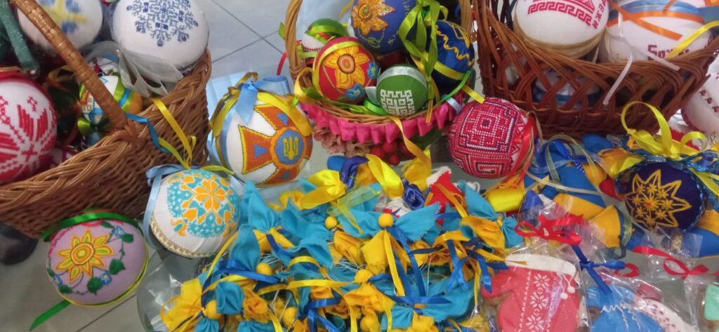 Каждая игрушка изготовлялась женщинами собственноручно, с молитвами о защитниках и защитницах Украины, которые на фронте и в тылу защищают страну.