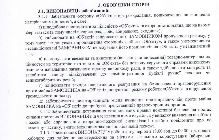 По этому тендеру, городскому совету должны предоставить охранные услуги для надзора за административно зданием и внутреннего двора исполнительного комитета Запорожского городского совета.
