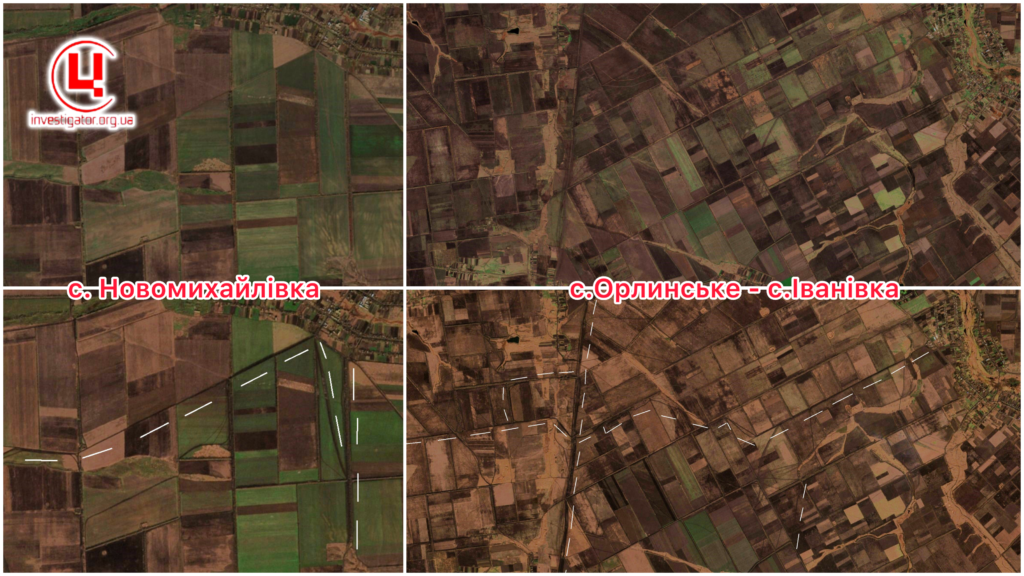 В частности, новые окопы и траншеи спутник зафиксировал к востоку от города Пологи Запорожской области, вблизи села Воскресенка и возле села Новомихайловка Донецкой области.