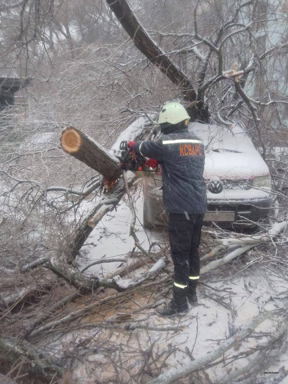 Из-за ветра и обледенения в городе упало 65 деревьев и веток. Специалисты начали их распиливать и вывозить. В первую очередь внимание уделялось деревьям, которые мешали движению транспорта и передвижению пешеходов.