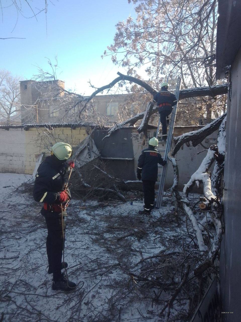 Из-за ветра и обледенения в городе упало 65 деревьев и веток. Специалисты начали их распиливать и вывозить. В первую очередь внимание уделялось деревьям, которые мешали движению транспорта и передвижению пешеходов.