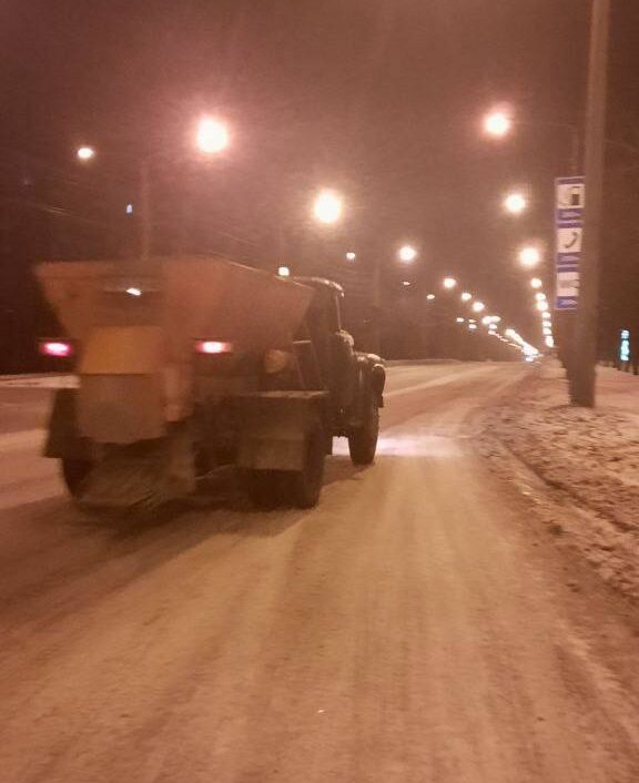 В Запорожье продолжают обрабатывать дороги от гололеда (ФОТО)