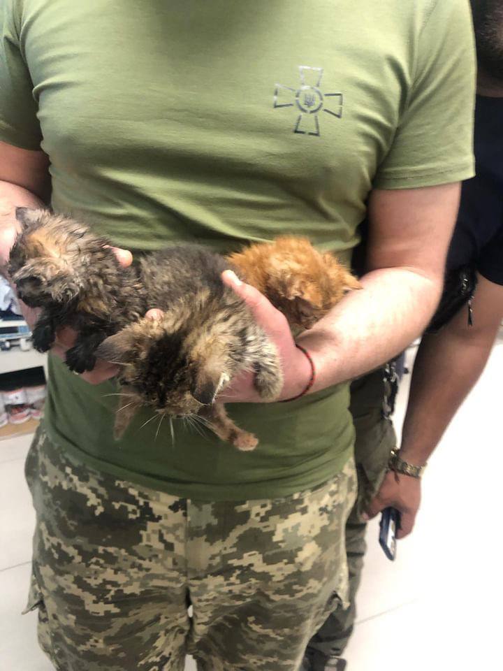 Сыченок, который спасен военными, кормили все по очереди, ловили насекомых, и когда была эвакуация 300, вывезли ко мне, с коробочкой с какими-то собранными средствами, “на спасение”.