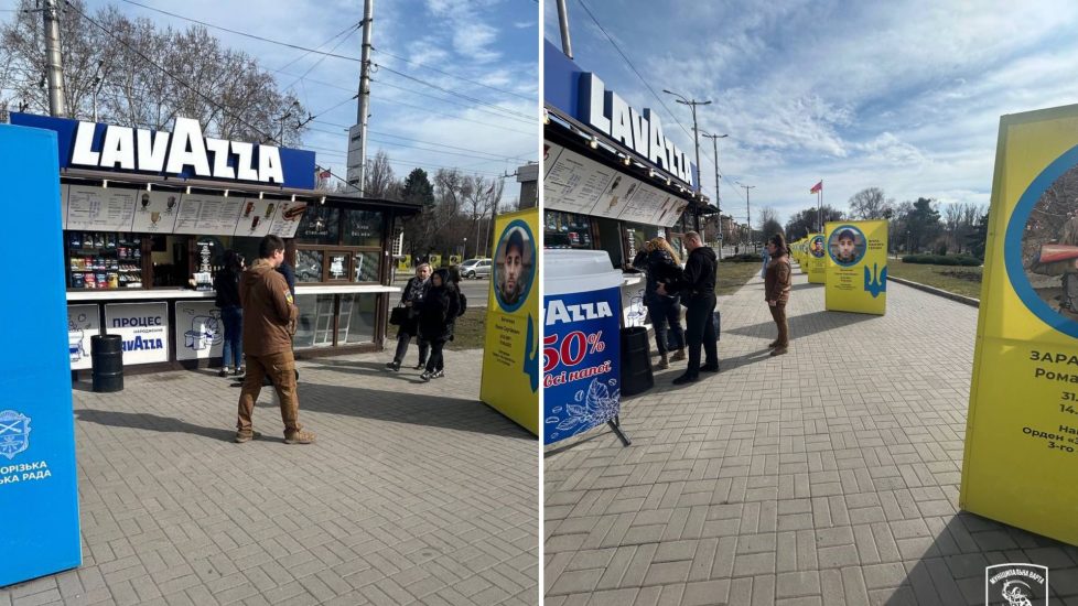 В центре Запорожья убрали кофейные столики, которые установили возле стендов с портретами погибших воинов. После общественной огласки Муниципальная стража провела проверку, и столики убрали.