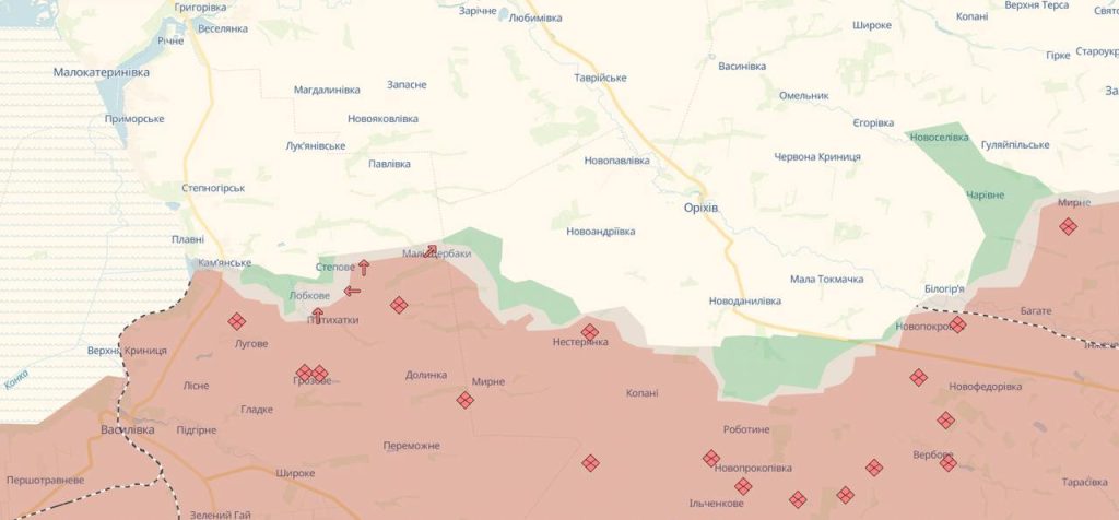 16 апреля российские силы осуществили масштабное наступление на украинские позиции на южном фронте, атакуя районы возле Пятихаток, Степового, Лобкового, Малой Токмачки и Малых Щербаков.