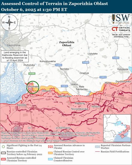 6 октября российские войска продолжали попытки наступления на востоке и западе Запорожской области, однако успехов не имели. Их задача — удержать позиции, прикрывать тыловые районы от ударов украинских Сил обороны и продвинуться на расстояние, с которого можно обстреливать Запорожье артиллерией.