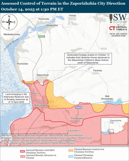 Аналитики отмечают, что это тактический успех Сил обороны на Запорожском направлении. В то же время российские войска 13-14 октября продолжали наступательные действия на востоке области, однако никакого подтвержденного прогресса не достигли.