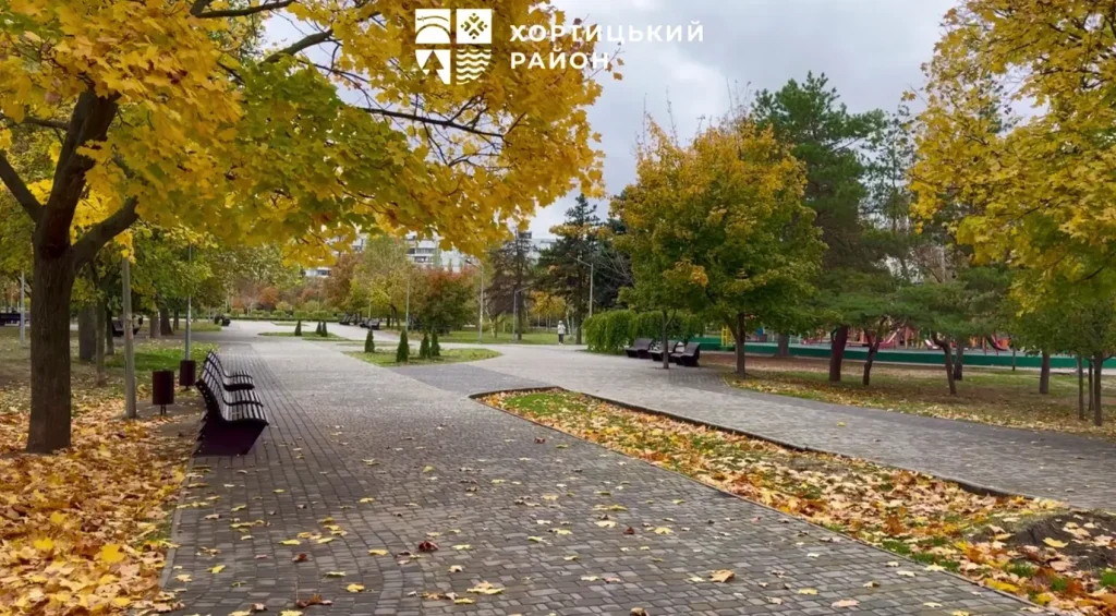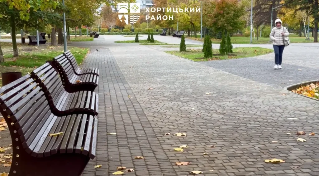 У парку Героїв Національної гвардії України відреставрували лавки. Скриншот: Хортицька районна адміністрація