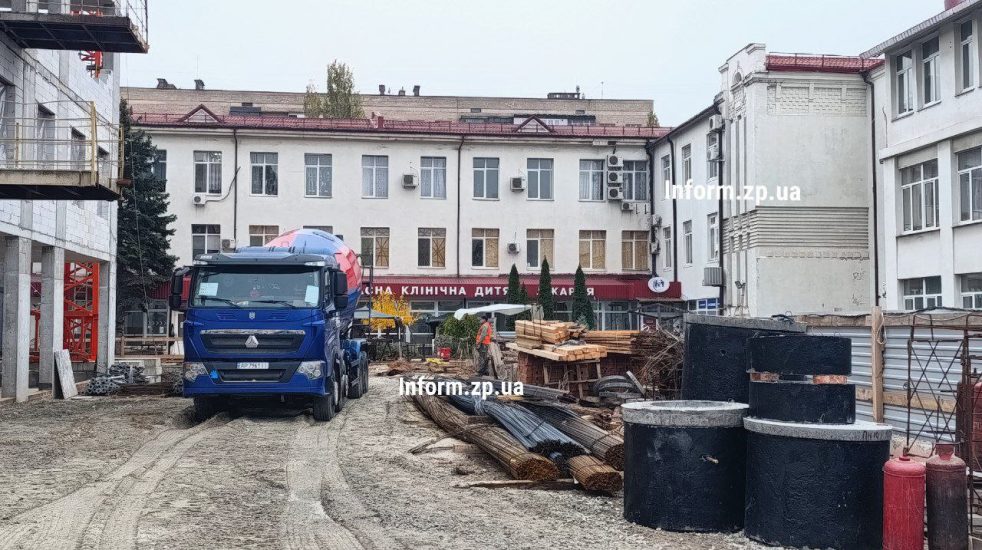Будівництво нового хірургічного корпусу обласної дитячої лікарні, 4 листопада 2025. Фото: Inform.zp.ua