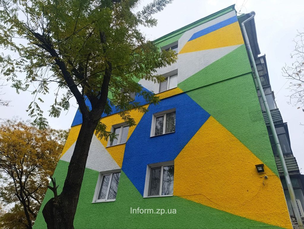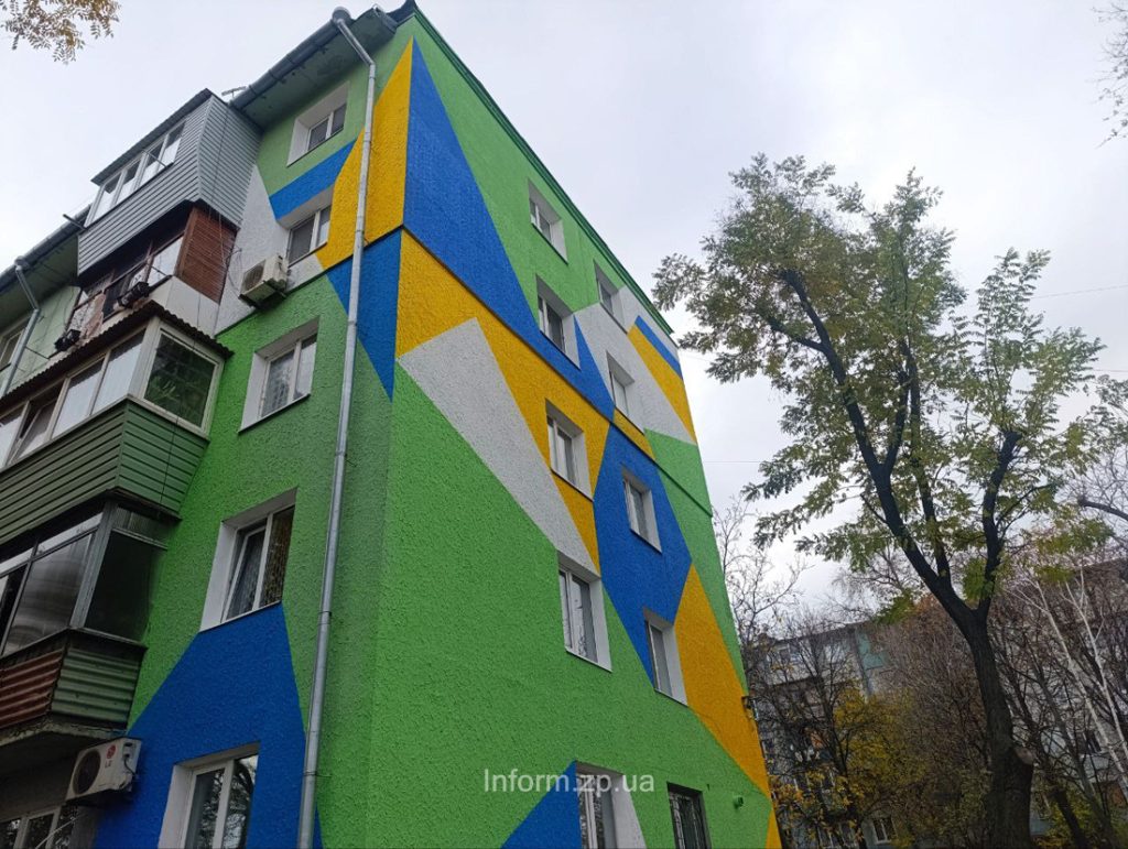 В Запорожье на пятиэтажке по улице Каменногорской появился яркий геометрический мурал.